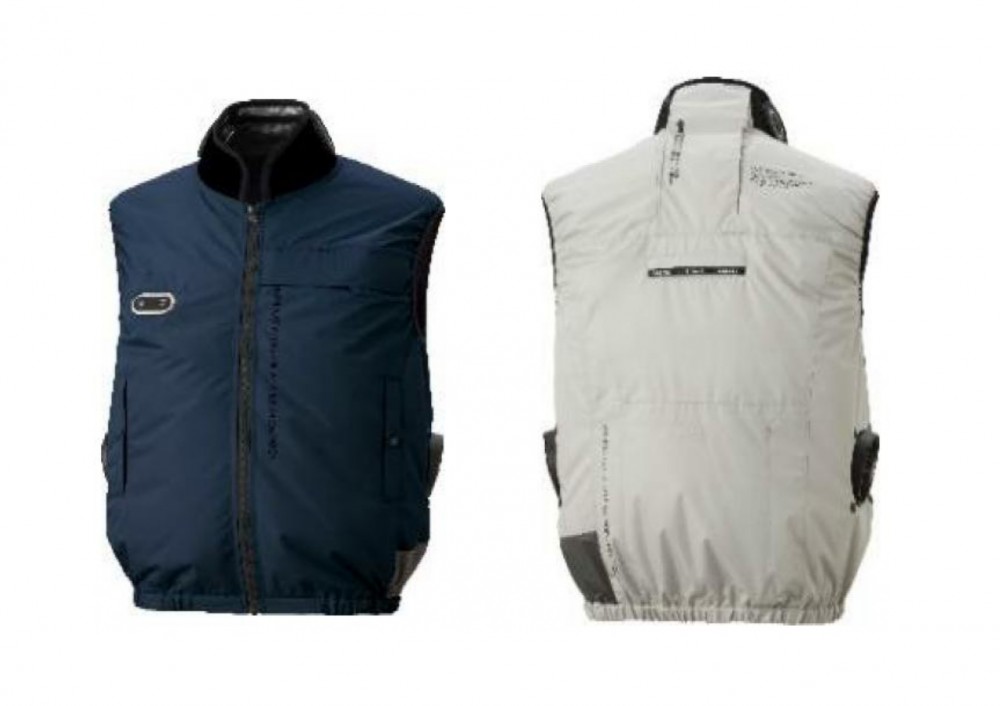【Wハイブリットクールウェア(空調服)】首元を冷やす「ペルチェ」と風を送る「ファン」のハイブリット型。バッテリーは最大7時間持続し、気温40℃近い環境でも高い冷却効果を発揮します。